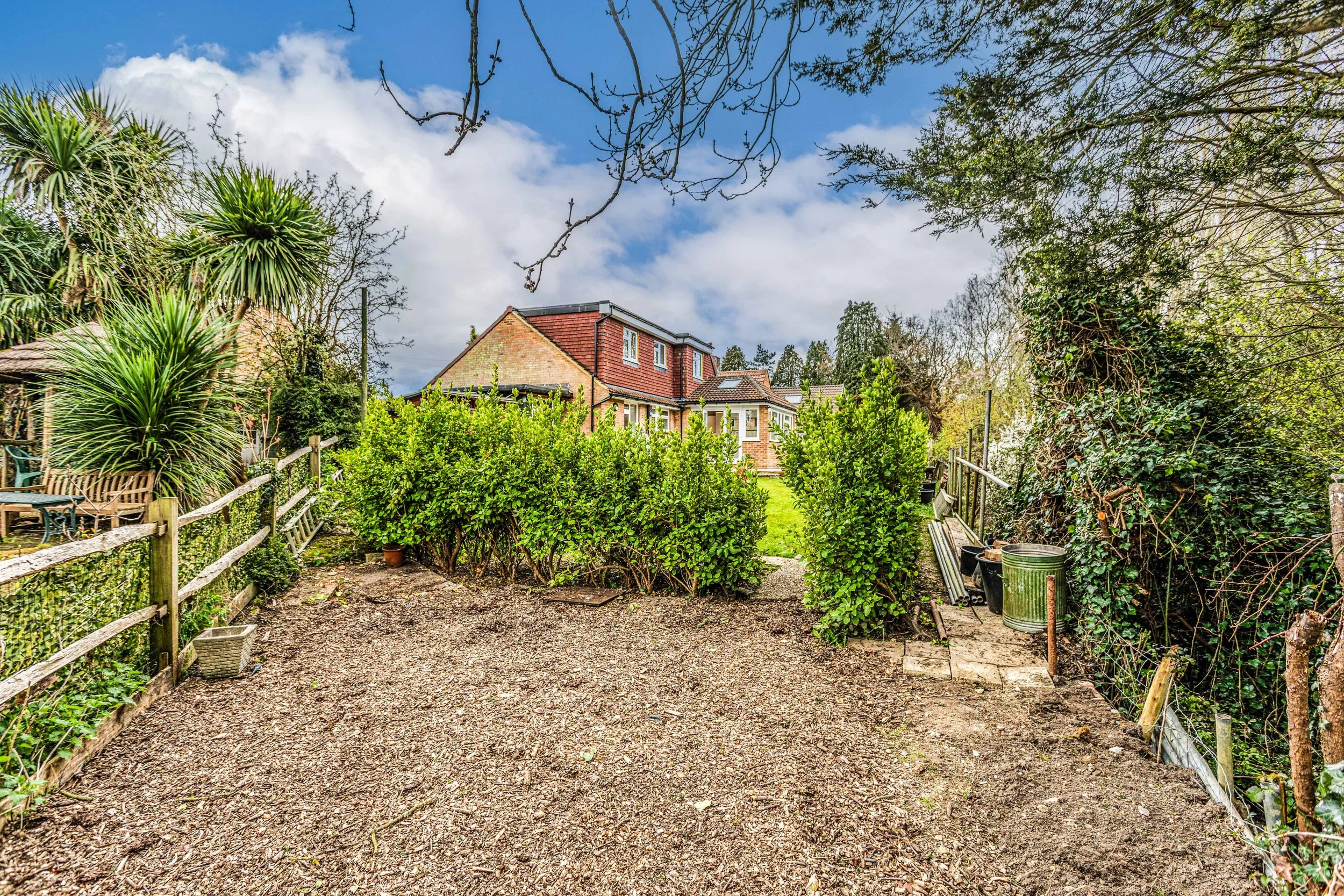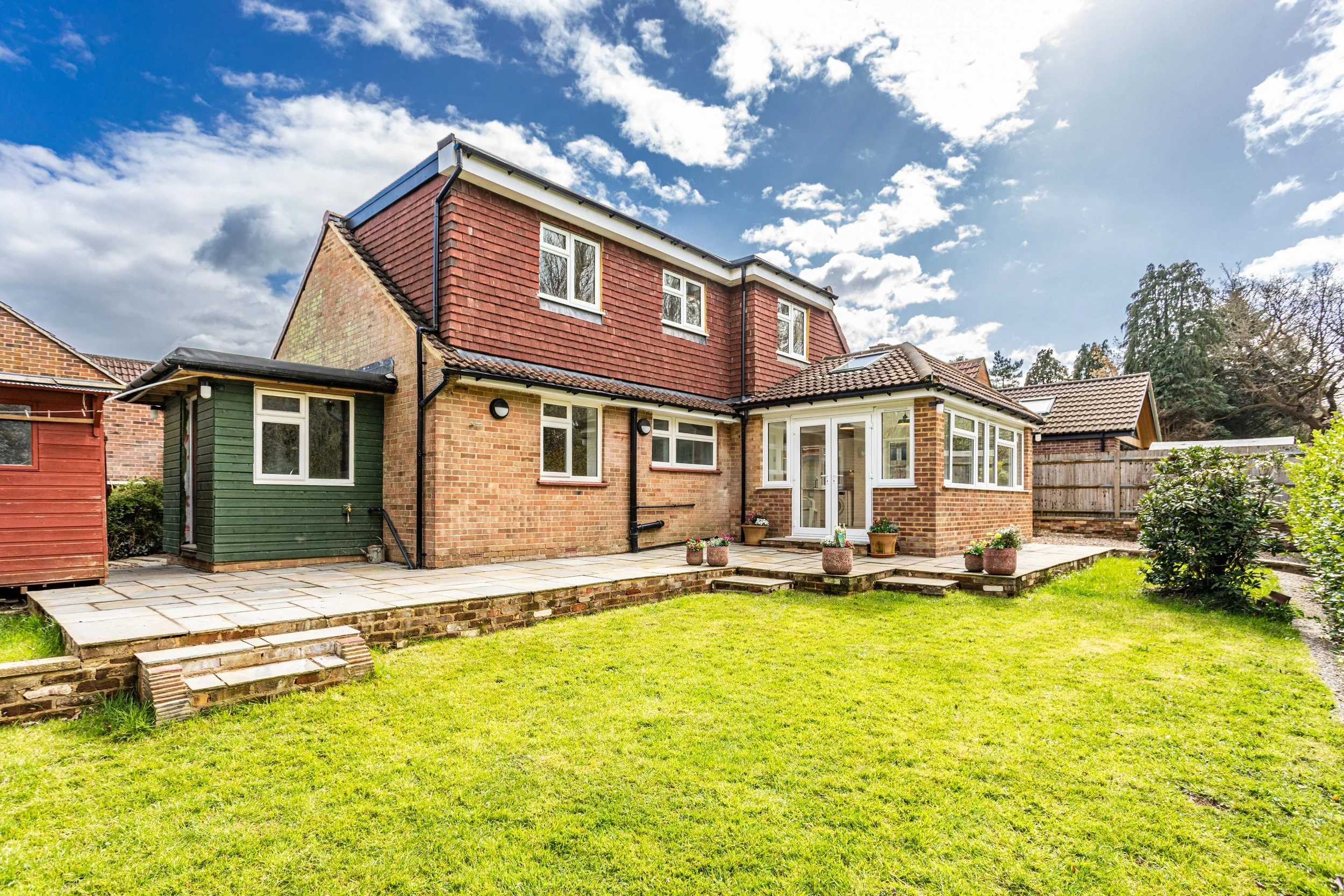 The property is approached via a shingle driveway providing off street parking complemented by additional parking to the side. A timber gate leads through to the rear garden where a generous paved terrace adjoins the house perfectly positioned for outdoor entertaining. Beyond, the garden is mainly laid to lawn, enclosed by Griselinia hedging that offers a good degree of privacy and a pleasing green backdrop.