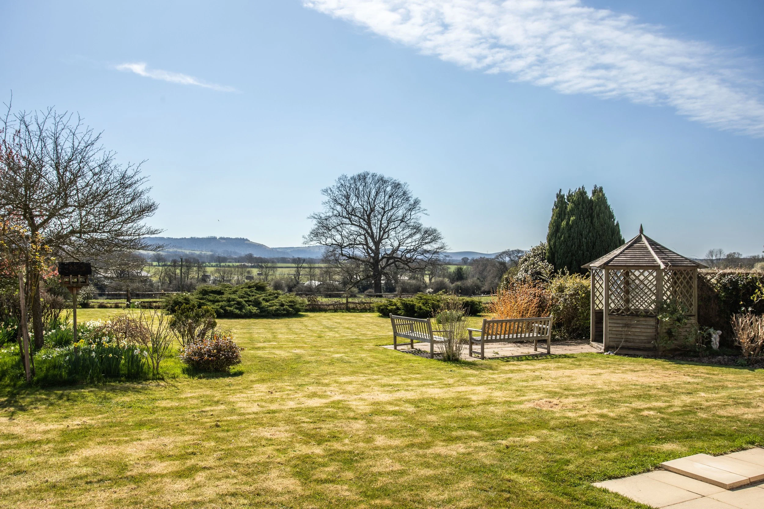 Stunning panoramic views over neighbouring farmland towards the South Downs
