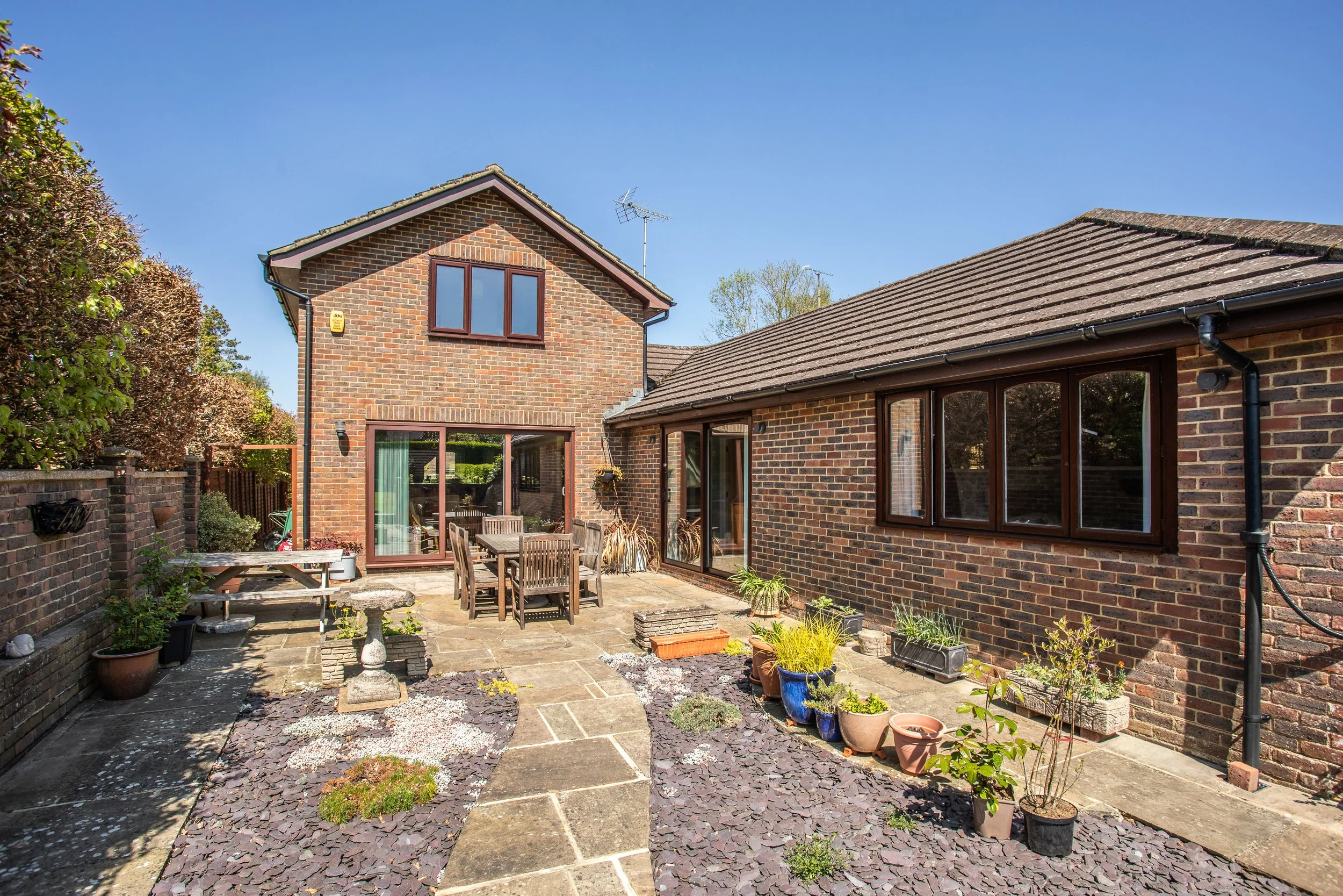 A significantly updated and remodelled detached house, boasting versatile accommodation and set in an elevated private position in landscaped gardens with glorious views towards Lodge Hill just minutes’ walk from the centre of the village