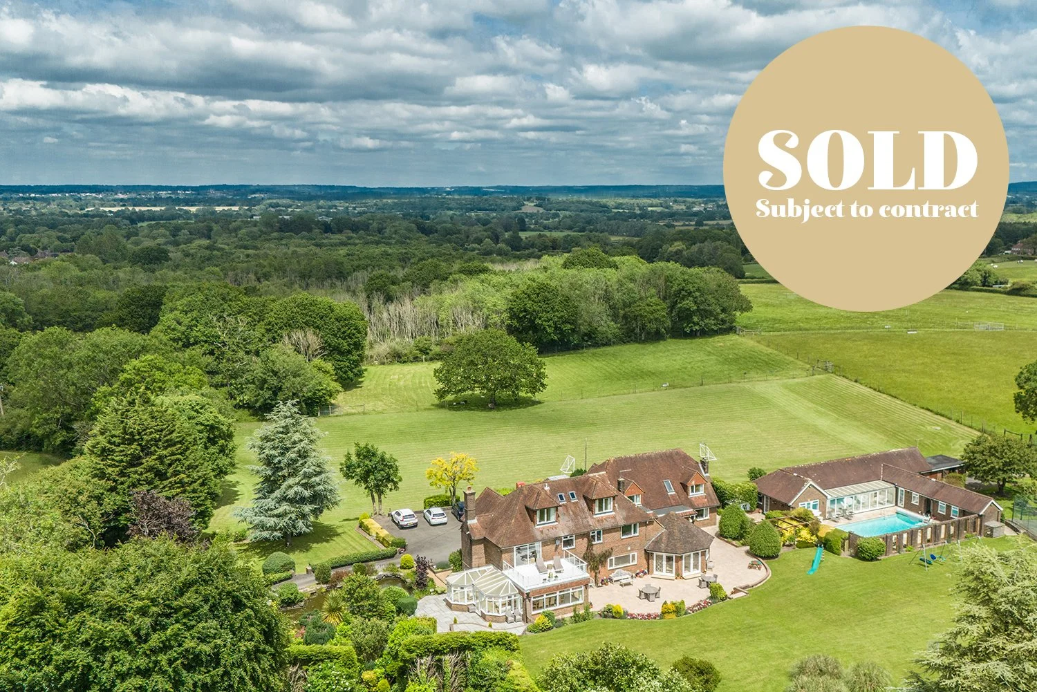 A substantial and private detached house set in generous landscaped gardens and grounds of approximately 0.7 of an acre boasting stunning southerly views over neighbouring farmland towards the South Downs