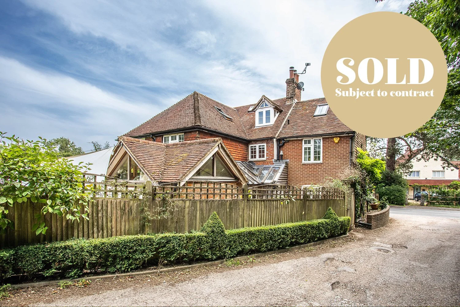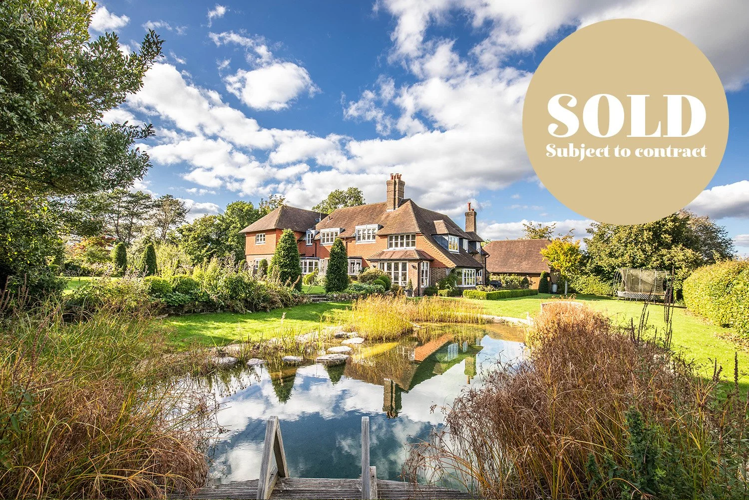 An exceptional and sympathetically updated ‘Arts and Crafts’ style country house set along a private lane in the most enviable of locations with views of the South Downs and beautifully landscaped gardens of approximately 1.2 acres