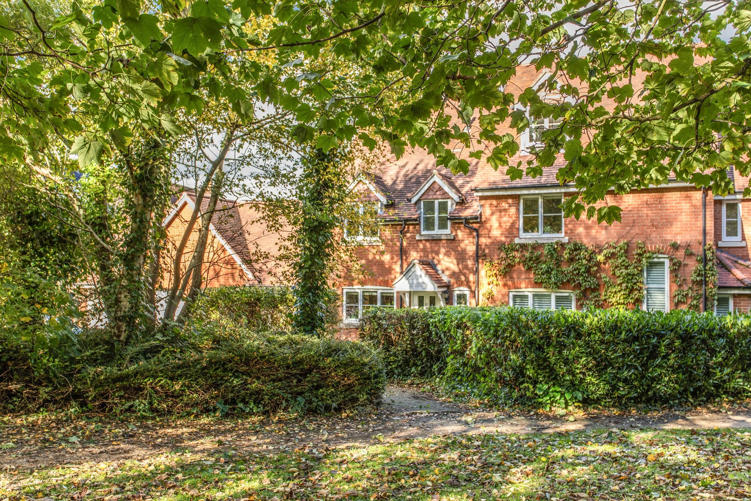 The property is approached via a block paved path that leads through the front garden bordered by a lawn and a mature wooded area. To the left of the lawn there are two allocated parking spaces. Two paved patios adjoin the rear of the property with a central lawn along with a well-stocked shrub and plant bed. A garden shed provides outdoor storage.