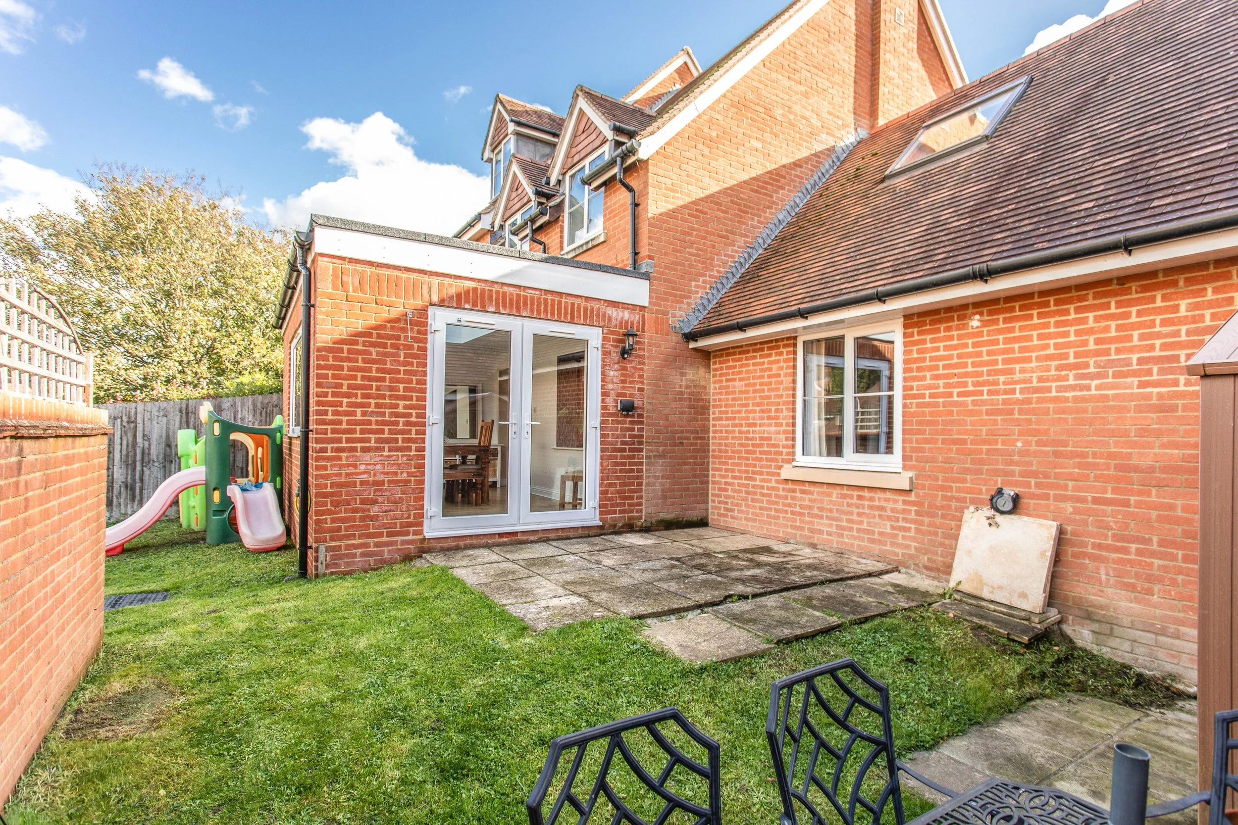A short walk from the High Street, this well-presented semi-detached home has been thoughtfully extended to create exceptionally versatile living space arranged over two floors. The heart of the home is the open-plan kitchen and sitting area, seamlessly connecting to the more recent addition of the light and spacious dining room, where glazed doors open directly onto the rear garden. A separate family room, accessed from the sitting area, provides adaptable accommodation, ideal as a playroom or additional bedroom if required. A well-equipped utility room offers further practicality with ample space and plumbing for a range of appliances. Stairs lead to the first floor where three bedrooms are served by a family bathroom. The principal bedroom features a en-suite shower room and a generous walk-in dressing area/home office. Outside, the fully walled rear garden combines a paved terrace with a lawn creating a private and easily maintained setting for outdoor dining or children’s play. The property benefits from two allocated parking spaces.