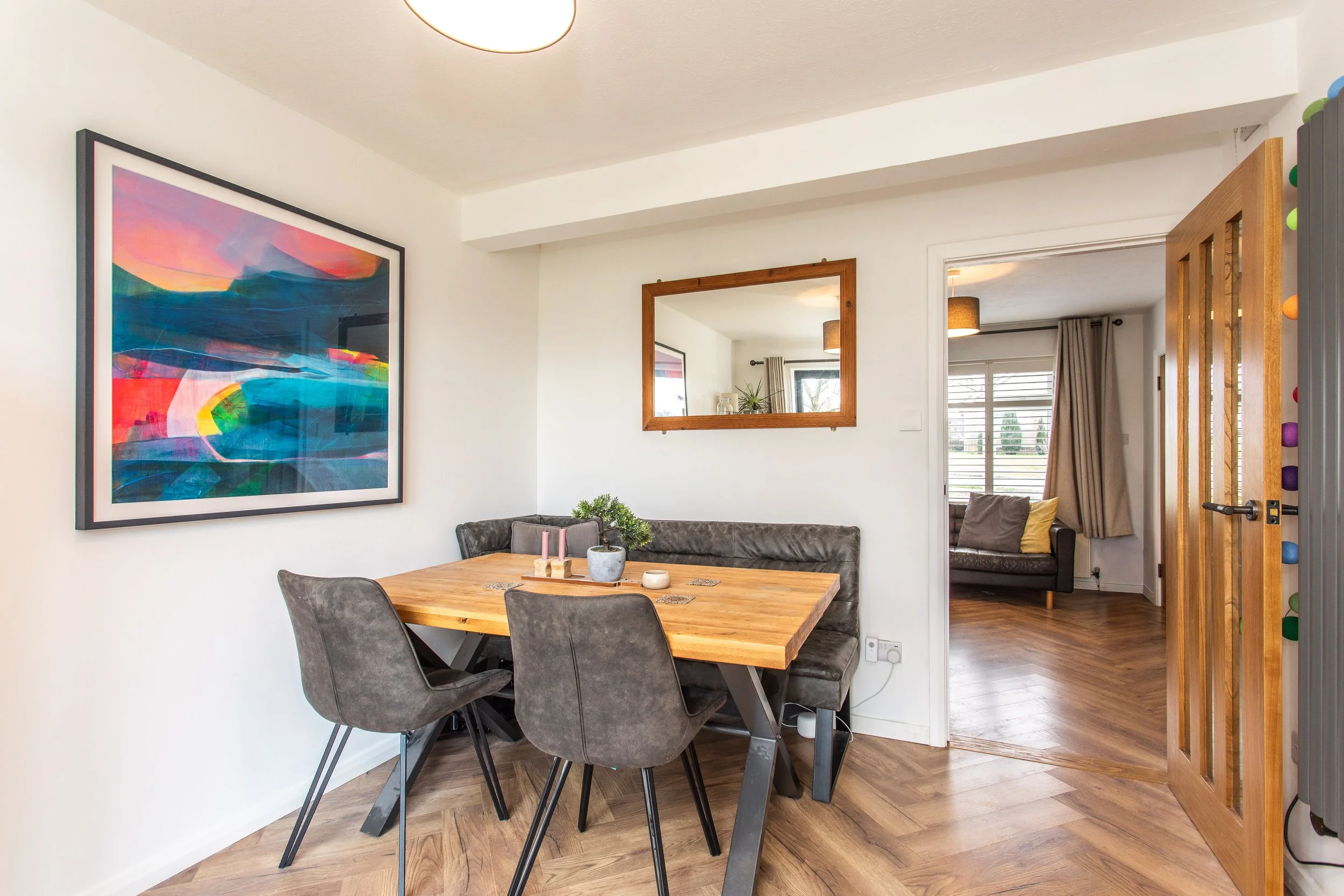 Situated in a highly sought after location, just a short walk from the High Street and the renowned St Lawrence Primary School, this beautifully maintained semi detached family home has been thoughtfully updated over the years. The property boasts a range of eco-friendly features including eight solar panels, two 5kW batteries and an EV charging point on the driveway. The ground floor offers two spacious reception rooms, a welcoming sitting room and a dining room with contemporary patio doors opening onto the rear garden. At the rear, the modern kitchen is fitted with stylish shaker style units and a selection of luxury integrated appliances. There is also the benefit of granted planning permission for a single storey rear extension providing the opportunity to further enhance the living space. The first floor comprises three well proportioned bedrooms and a modern bathroom complete with both a bath and a separate shower cubicle. The rear garden is predominantly laid to lawn complemented by a generous paved terrace, an ideal private space for entertaining. Additional features include off street parking on the driveway and a garage with a large store having a multitude of uses.