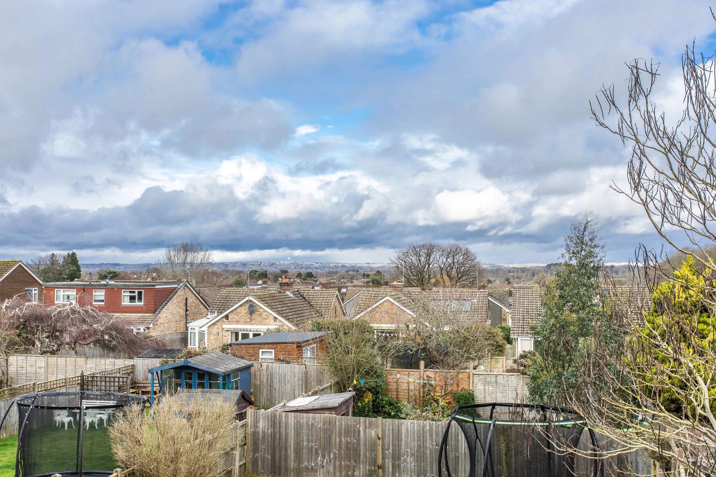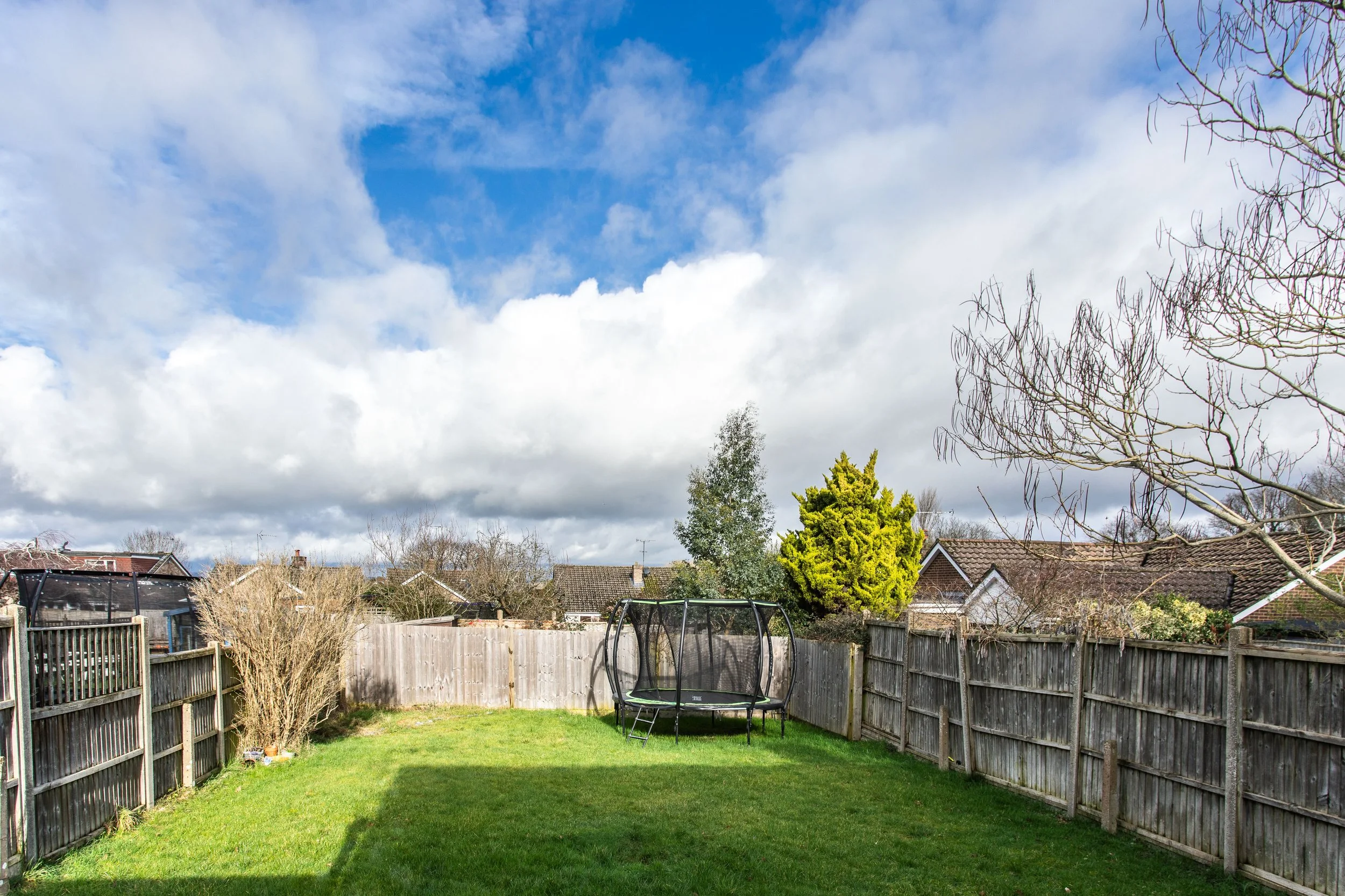 The property is approached over a stone driveway with parking for three cars and access to the garage. Side access is via a timber gate where a paved terrace adjoins the rear of the property with a step down to lawn. The lawn has a variety of shrubs along the border and there is the further benefit of a store attached to the rear of the garage.